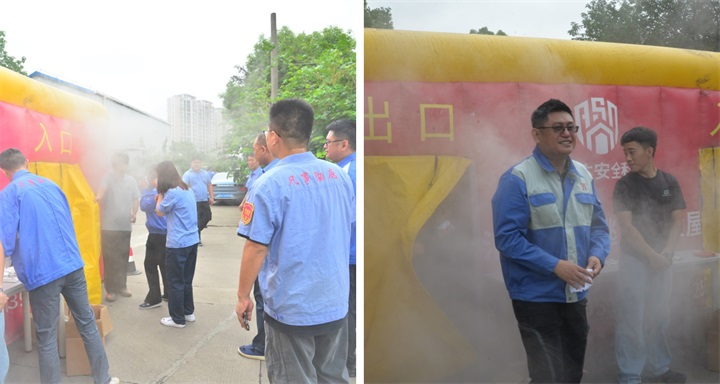 在灭火器实操区,员工们化身“灭火尖兵”,对准模拟火源精准喷射;在逃生舱内,大家弯腰捂鼻,在逼真的烟雾环境中强化逃生本能。从“思考判断”到“本能反应”,安全意识的种子在一次次的演练中生根发芽。