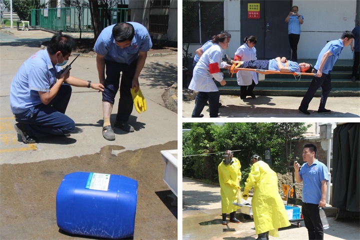 6月27日,一场危险化学品泄漏演练在表面科技厂上演,并邀请环保局领导现场观摩指导。