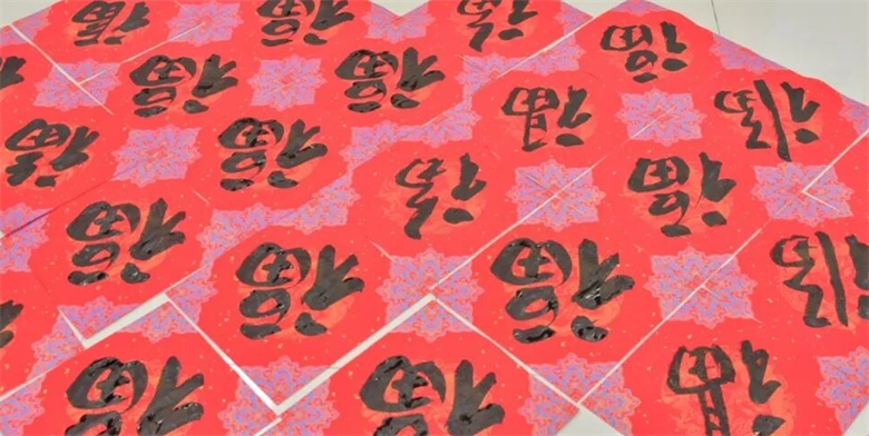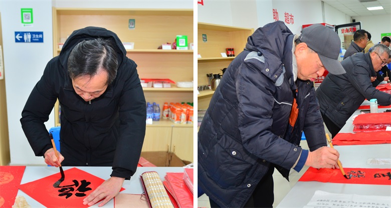 活动现场,几位老同志精神矍铄、神采奕奕,凝神挥毫、泼墨寄情。笔锋流转间,遒劲有力的字迹跃然红纸之上,一幅幅寓意吉祥、气势昂扬的春联,一个个饱满圆润、福气满满的“福”字,承载着辞旧迎新的时代期许,寄托着对家园兴旺、家人安康的真挚祝福。“骏马奔腾迎盛世,吉祥如意贺佳年”“三羊开泰贺新春,一马平川行好运”,每一副楹联都笔力千钧,每一笔墨迹都饱含深情,既彰显着传统文化的魅力,也凝聚着老同志们对公司、对家人的美好祝愿。