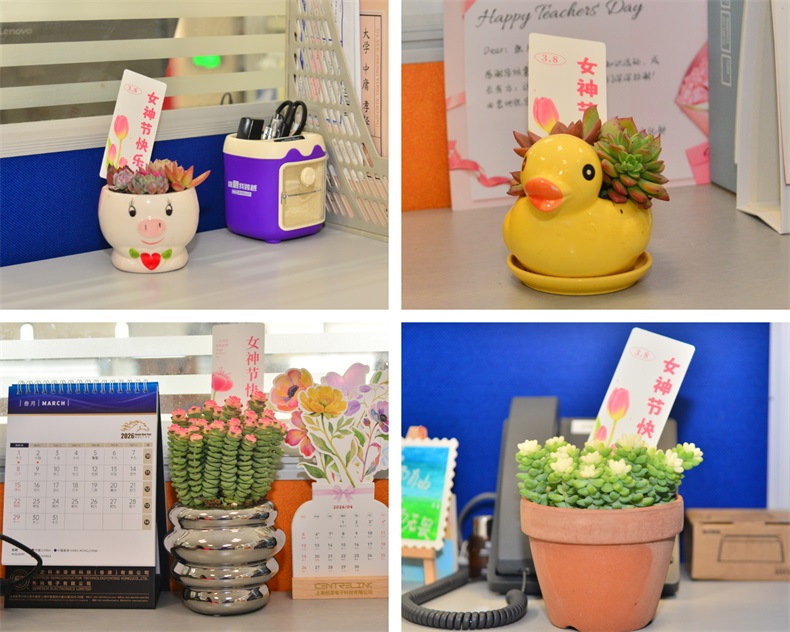 女神们发现办公桌上多了一抹清新的绿意,一盆萌趣的绿植,旁边插着一张卡片,字里行间流淌着公司最真挚的祝福。