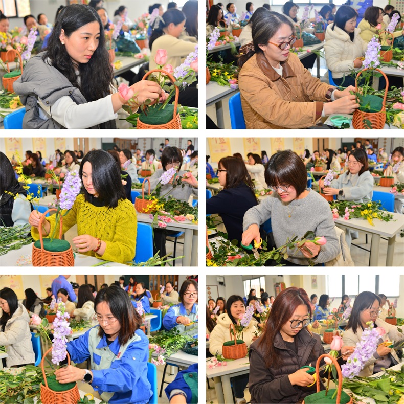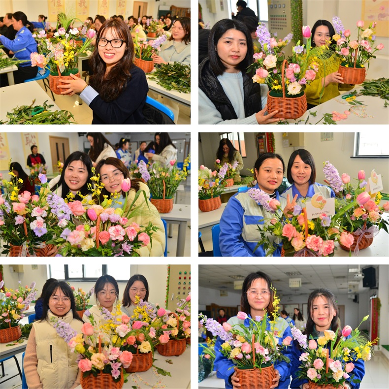 修剪枝叶、调整角度、色彩搭配……平日里敲击键盘的灵巧双手,此刻在花丛间翩翩起舞;玫瑰的热烈、康乃馨的温馨、郁金香的雅致、紫罗兰的温婉,在一双双巧手下汇聚成独一无二的艺术品。