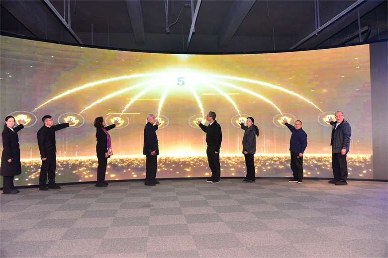 吴董、邢老师及多位领导共同上台,将手掌按在象征太极精神的手印装置上。随着全场倒计时,一幅巨大的太极手印从屏幕落下,精准“点亮”苏州固锝的坐标。